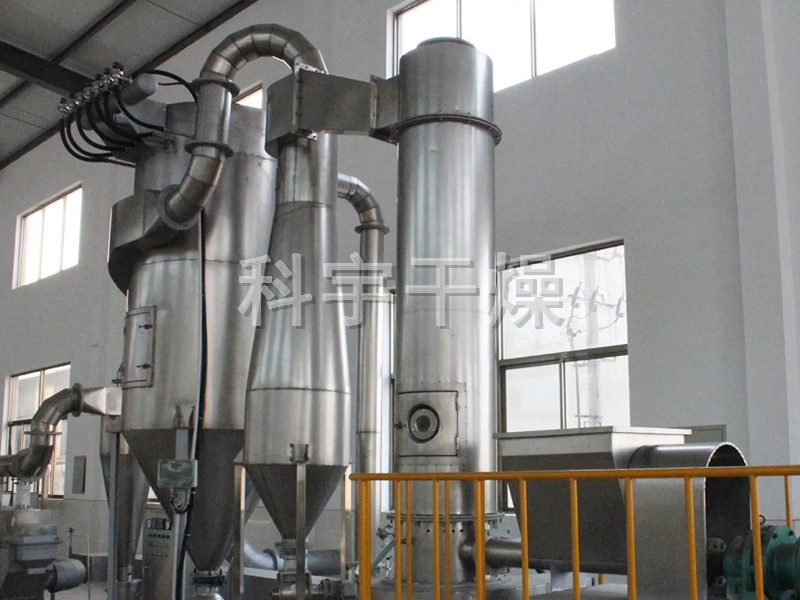 带动湿物料,使湿物料悬浮在热空气中,这样强化了整个干燥过程,提高了传热传质的速率,经过气流干燥的物料,非结合水分几乎可以全部除去(例如:淀粉等物料进料含水量≤40%左右,成品出料可为13.5%), 并且所干燥的物料,不会产生变质现象,产量可比一般干燥机干燥有显著提高,用户可在短期内取得较高的经济效益。
