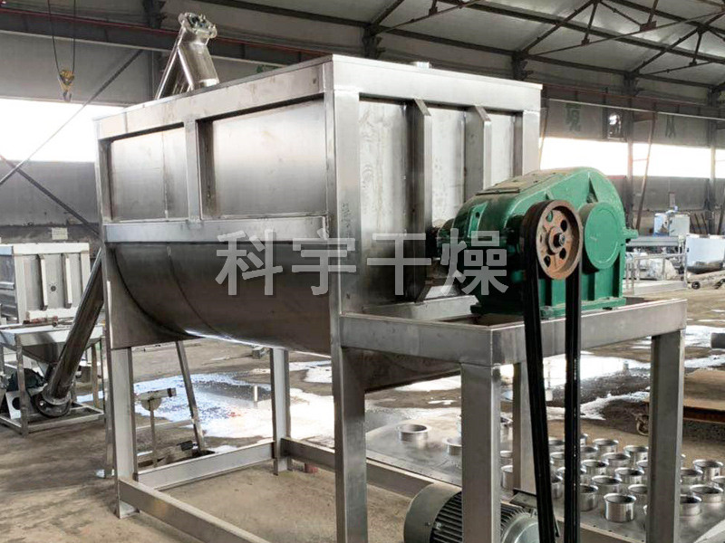 螺带混合机一般用于粘性或有凝聚性的粉粒体的混合以及粉粒体中添加液体及糊状物料的混合,同时由于粘性物料清洗困难的特点,适用于产量大、不经常更换品种的场合混合。