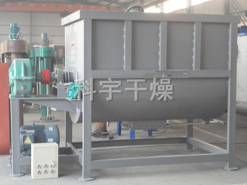 该机型由容器、螺旋搅拌叶片和传动部件组成:螺旋叶片一般做成双层或三层,外层螺旋将物料从两侧向中央汇集,内层螺旋将物料从中央两侧输送,形成对流混合。